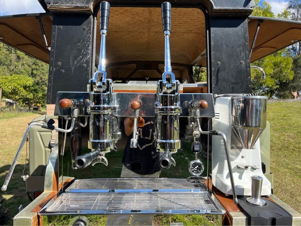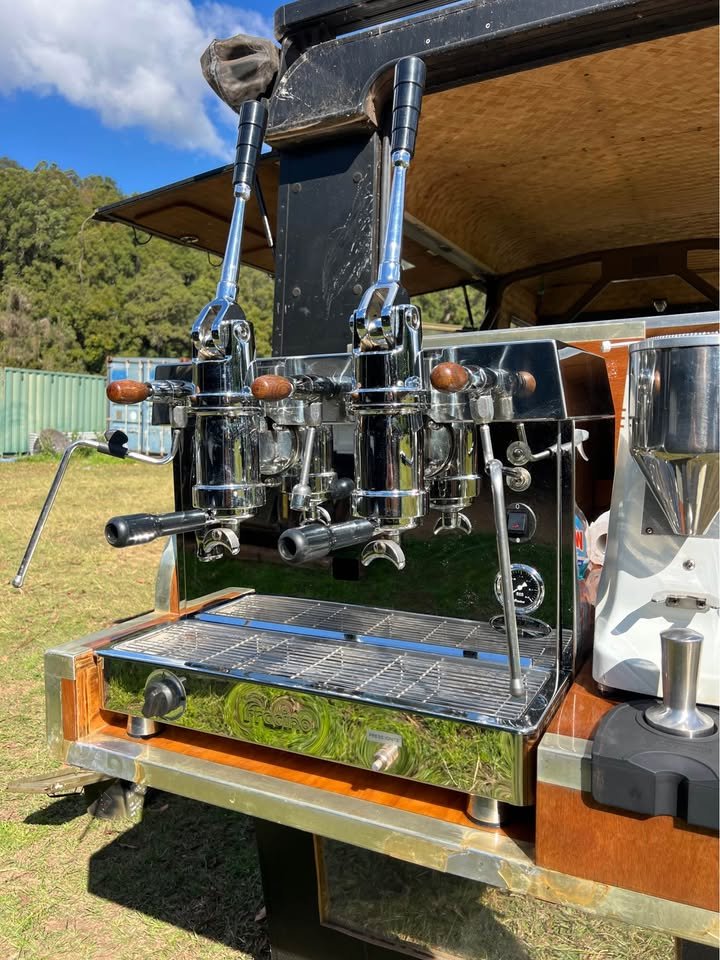 Maybe you see it pulling up at a festival, dust still clinging to its tires from the track that got it there. Maybe you see it set up on a quiet beach, the hiss of the espresso machine mixing with the sound of crashing waves. Maybe you see it in the mountains, steam rising from the cups like the mist curling through the trees.