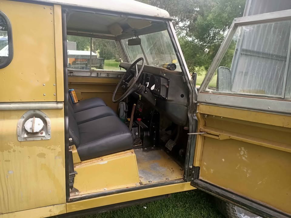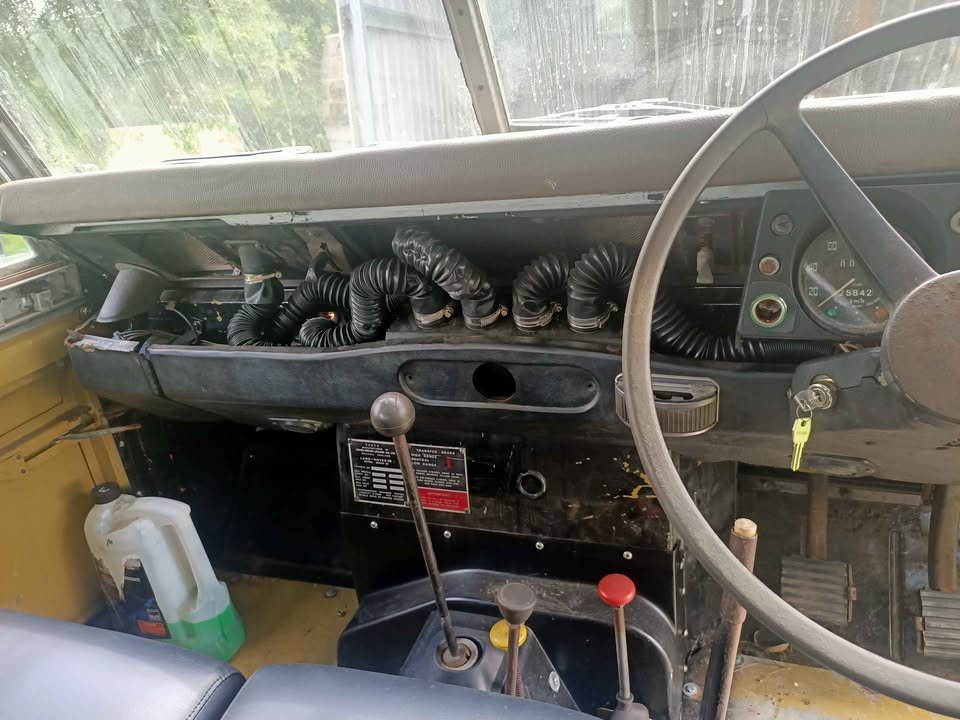 Inside, the original dash tells its own tale, the hand-stitched leather seats hold the ghosts of journeys past, and the weathered but unshaken bodywork speaks of places where only the bold dare to go. This isn’t a Land Rover that hides its years – it wears them like a badge of honor.
