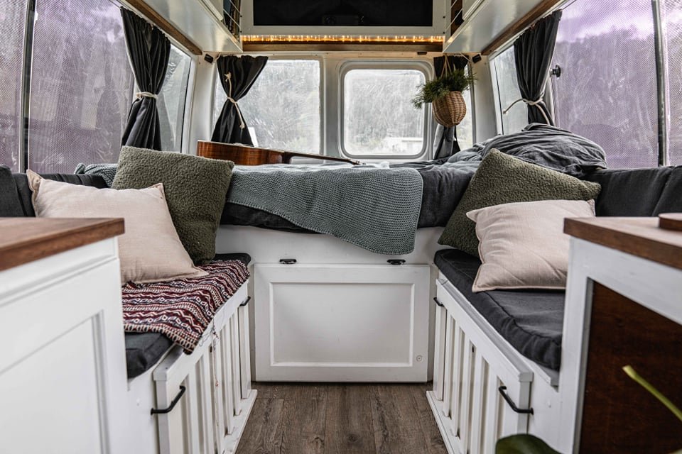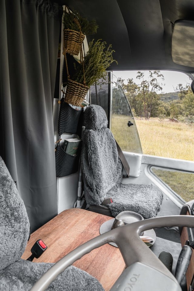 A 1994 Toyota Coaster, built not just to travel, but to live. A home that moves with you, that follows the tides and the wind and the slow pull of the places that call you in. A rolling sanctuary wrapped in white like seafoam, dusted in tan like the sand beneath your feet, designed to hold everything you need and nothing you don’t.